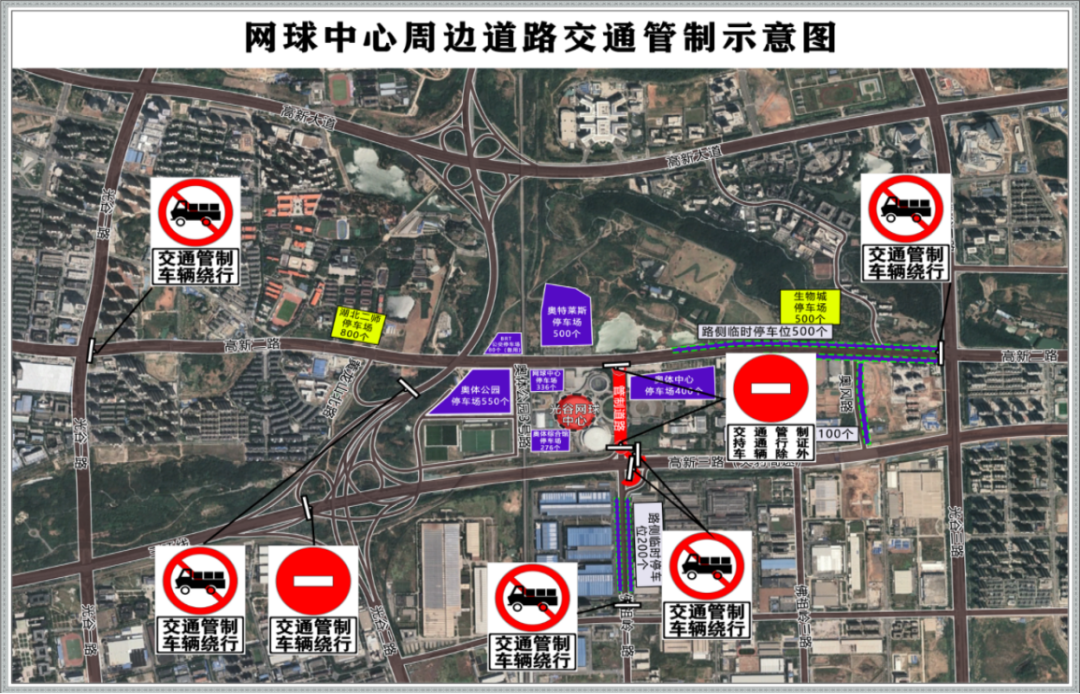 为确保观众及车辆安全有序集散,每场活动开始前1小时至工作结束,对网球中心周边道路采取以下临时性交通限制措施: