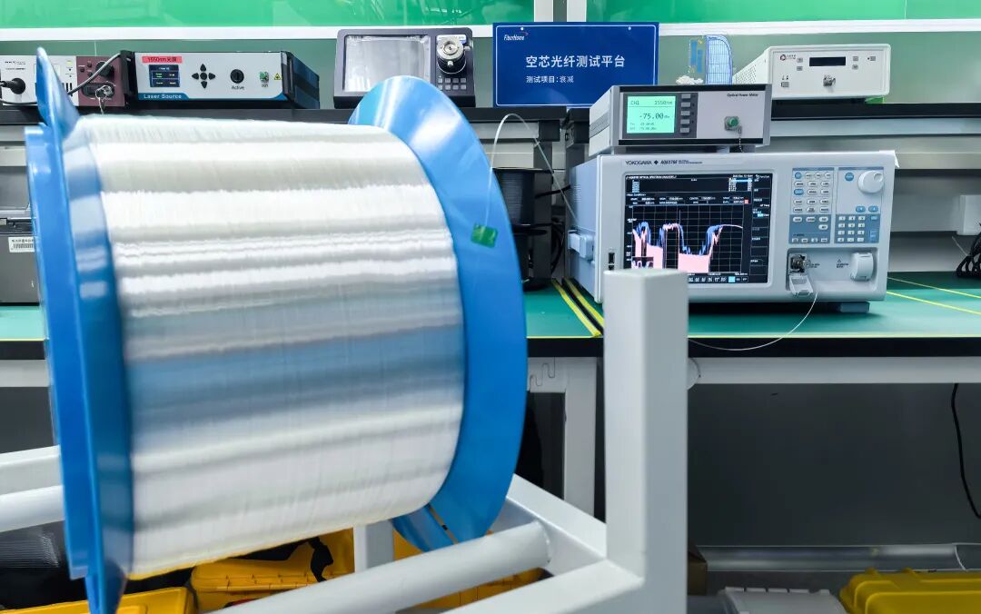 ♦ 自主研发的空芯反谐振光纤在通信窗口获得稳定衰减性能,1550nm波段的最低衰减值达0.063dB/km,跻身国际先进水平,并突破空芯光纤在水汽浸入、CO₂气体吸收峰抑制、OPGW光缆及雷击实验研究等方面的工程化瓶颈
